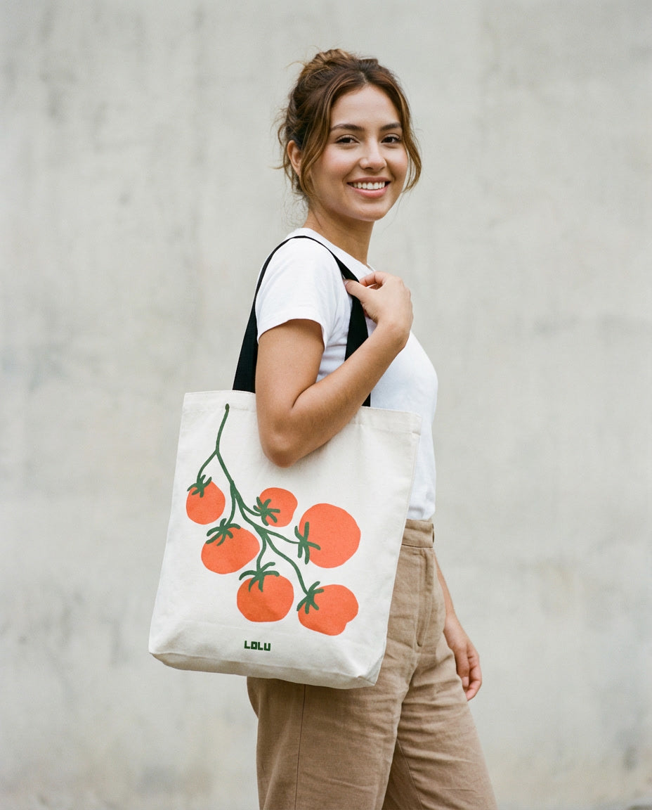 Tote Bag blanca - 36 cm x 40 cm - bolsillo interno - diseño Pomodoro